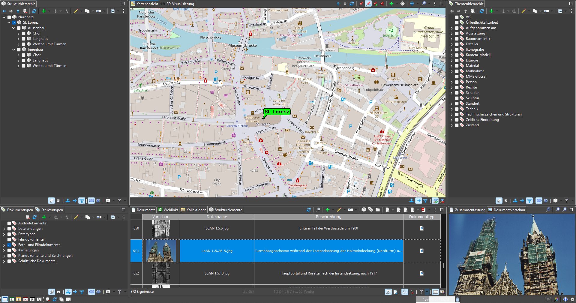 Das vom Bundesministerium für Bildung und Forschung (BMBF) geförderte Forschungsprojekt „Die Nürnberger Großkirchen – Best Practice für die digitale Erfassung komplexer Baudenkmale“ wurde in Kooperation zwischen der Universität Bamberg und dem damals an der Universität Passau stationierten MonArch-Team durchgeführt. Ziel des zwischen 2018 und 2021 laufenden Projekts war die Erstellung einer Baubestandsdokumentation in Form eines umfassenden digitalen Modells der Kirche im MonArch-System. St. Lorenz lässt sich als komplexes System zahlreicher Einzelobjekte verstehen – Portale, Pfeiler, Gewölbe, Skulpturen und Ausstattungsstücke –, die jeweils kunst-, bau- und materialhistorisch hoch relevante Informationen transportieren. Ihre räumliche Struktur bildet einen Bedeutungsraum, in dem jedes Element in Beziehung zu anderen Bauteilen steht und so das Gesamtverständnis des Bauwerks vertieft.
